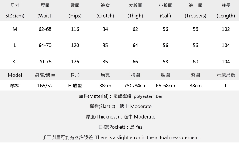 Pay attention to the size chart.