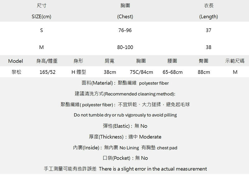 自帶胸墊可單穿,當內搭也很適合~
