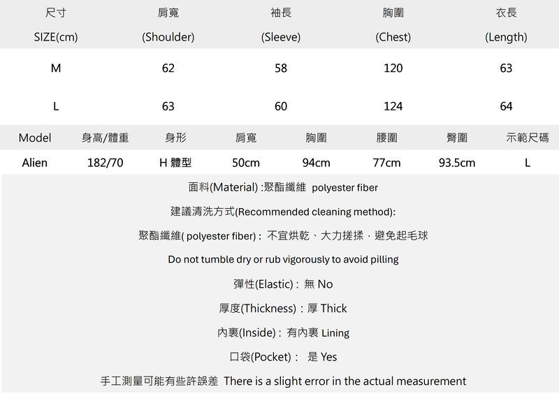 袖口跟衣襬都是彈性縮口設計