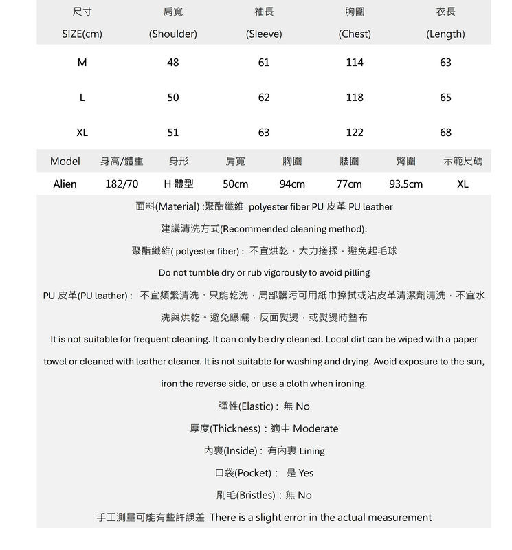 男/金屬鉚釘排列大口袋皮質外套