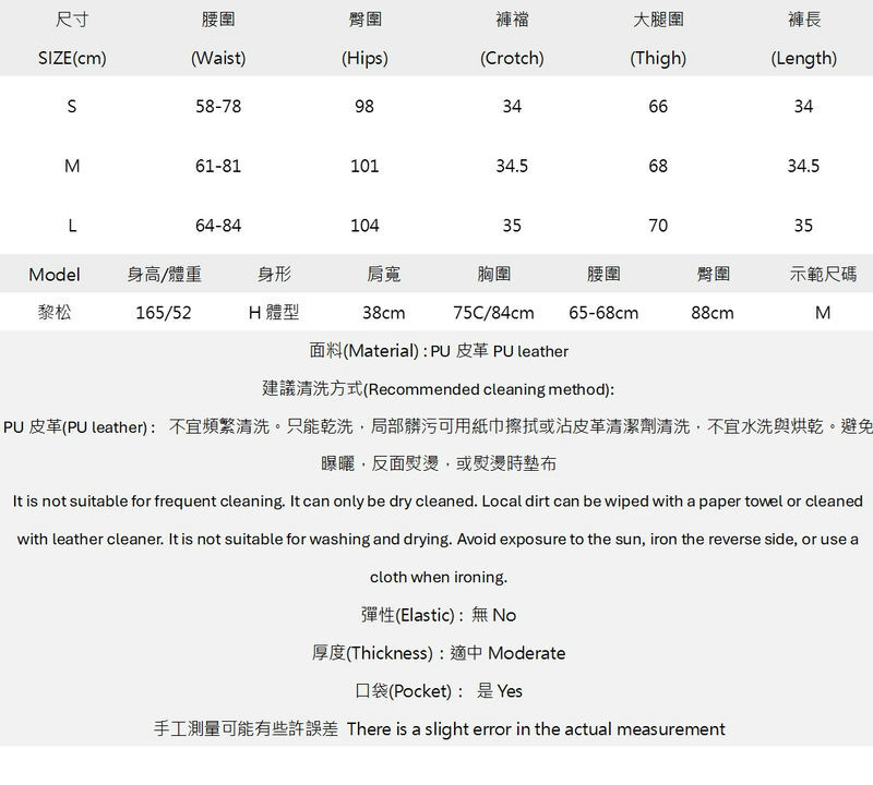 彈性腰圍穿著舒適,皮革面料增添個性