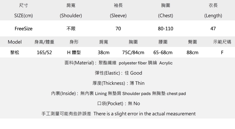面料較透,建議內裏搭配背心或小可愛。